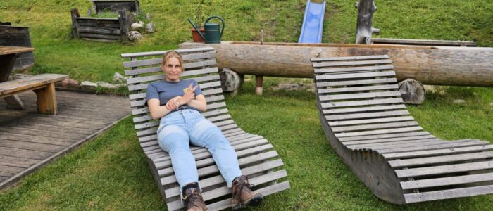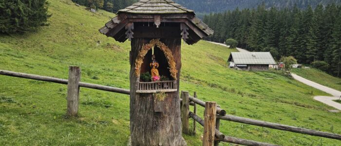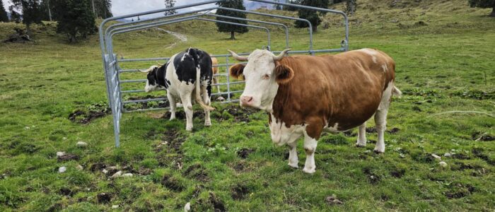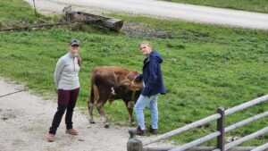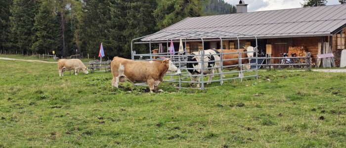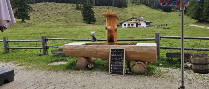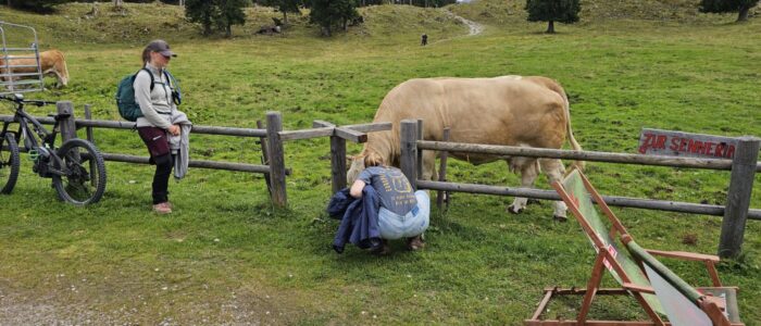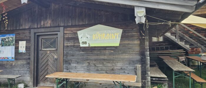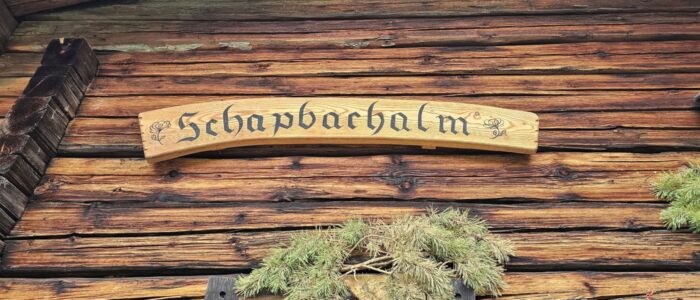 Een stukje voor het einde van de wandeling komen we bij de Schapbachalm. Hier hebben we mazzel en zijn we net op tijd om nog iets te bestellen voor dat de Sennerin, een andere dan daarstraks, zich met de koeien bezig gaat houden.