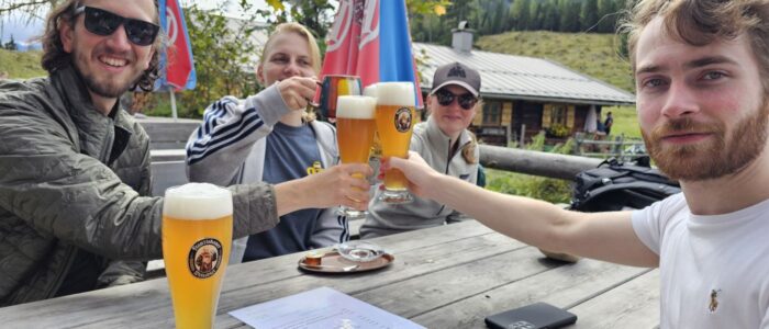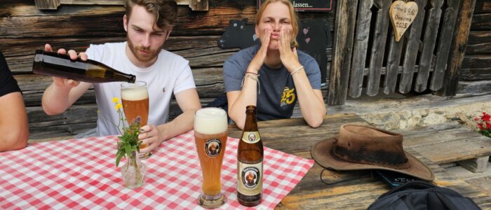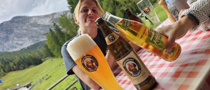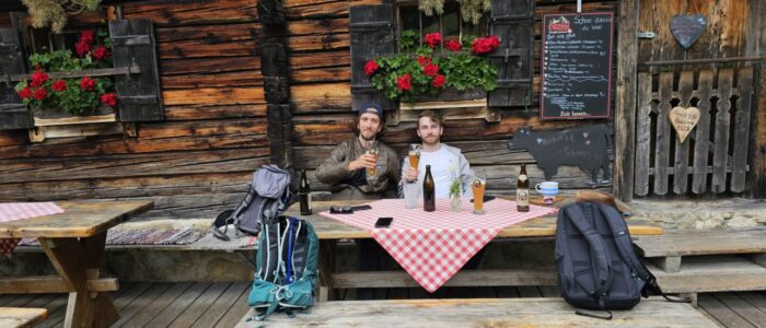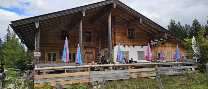 Als we weer terug zijn op de Kührointalm komen we tot de conclusie dat hier nog een horeca gelegenheid is, die Sennerin. Dus drinken we hier nog een biertje voordat we verder lopen.