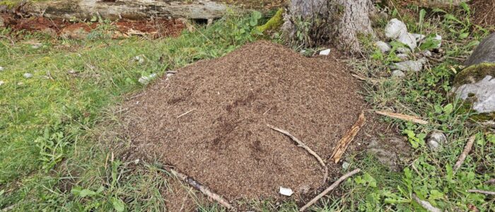 Het gaat nu omlaag en Sandy gaat nu ook wat langzamer. Die loopt heel voorzichtig omlaag omdat ze bang is dat ze anders valt. We zien hier diverse grote mierenhopen en vragen ons af of die ondergronds allemaal connected zijn.